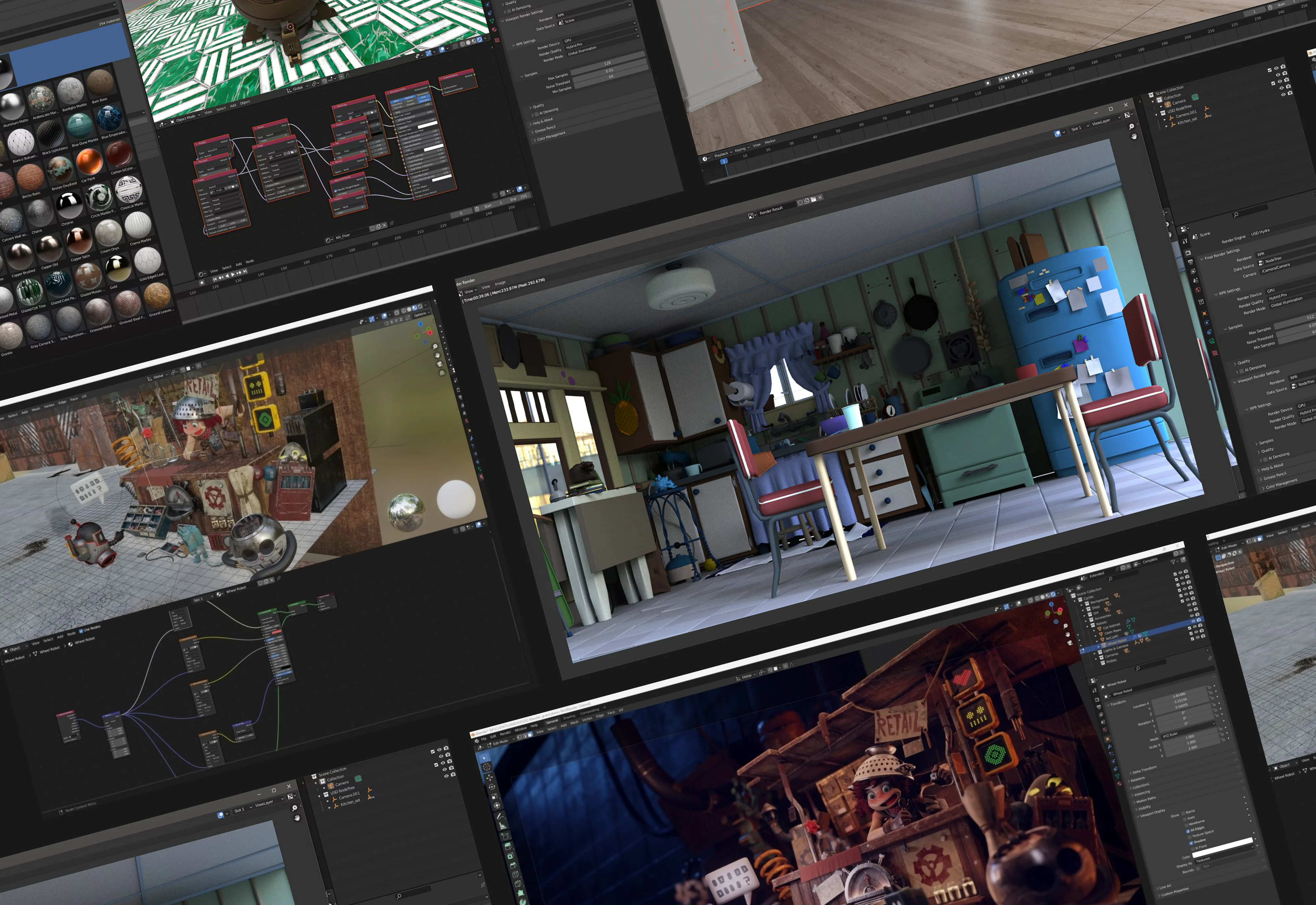 Our team developed a system to convert Blender shaders into MaterialX format, compatible with Hydra.