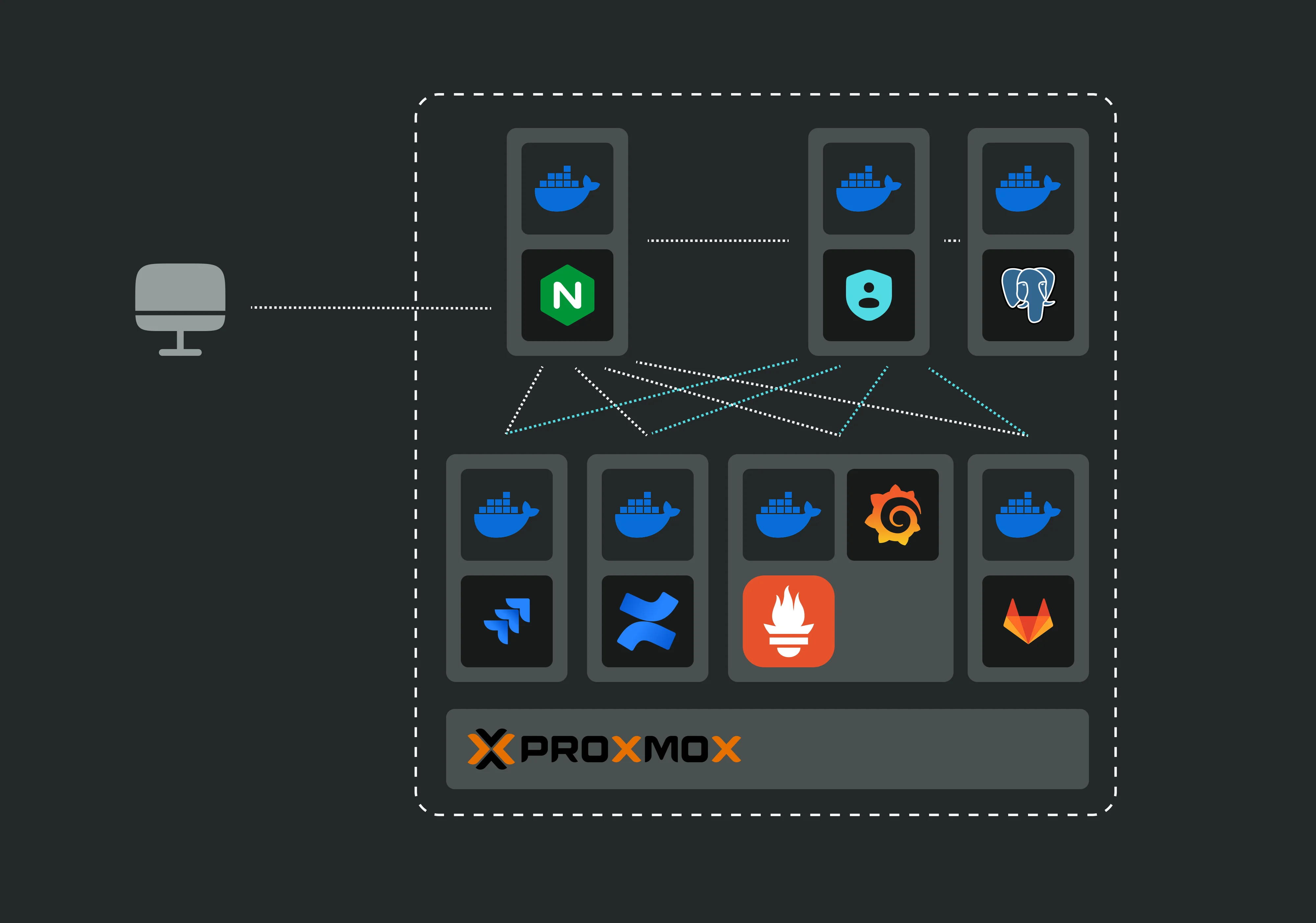 Implementation of IT infrastructure for NoLabel: deployment of six services, support for 80 users, and ensuring high availability. Integration of Jira, Confluence, GitLab, and Proxmox.